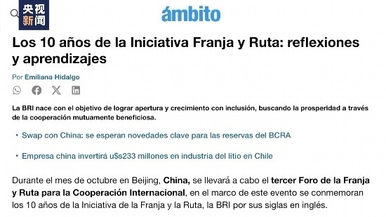 阿根廷著名經(jīng)濟(jì)類(lèi)日?qǐng)?bào)《金融界報(bào)》在官網(wǎng)發(fā)表評(píng)論文章,回顧了共建“一帶一路”倡議的發(fā)展歷程和帶給世界的思考和借鑒。文章稱(chēng),經(jīng)過(guò)十年發(fā)展,該倡議已覆蓋全球150多個(gè)國(guó)家,為世界互利共贏合作樹(shù)立了榜樣。