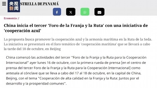 第三屆“一帶一路”國(guó)際合作高峰論壇也受到多國(guó)主流媒體關(guān)注。巴拿馬歷史最悠久,全國(guó)發(fā)行量最大的日?qǐng)?bào)之一《巴拿馬星報(bào)》刊發(fā)了主題報(bào)道,聚焦高峰論壇發(fā)布的《“一帶一路”藍(lán)色合作倡議》,并評(píng)論稱(chēng)這一倡議體現(xiàn)了中國(guó)對(duì)于高質(zhì)量推進(jìn)“一帶一路”海洋合作的高度重視。