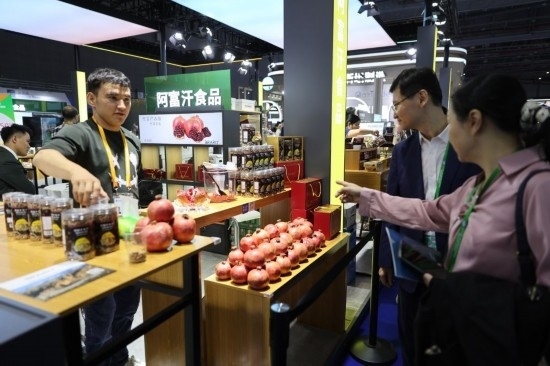 11月6日,在第六屆進博會食品及農(nóng)產(chǎn)品展區(qū),阿富汗食品吸引參展人員。