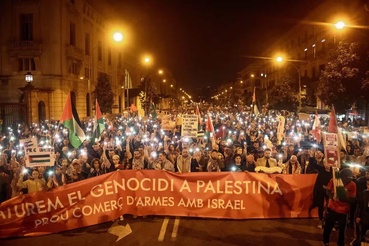 當(dāng)?shù)貢r(shí)間11日,民眾在西班牙巴塞羅那參加支持巴勒斯坦游行 圖源:《衛(wèi)報(bào)》