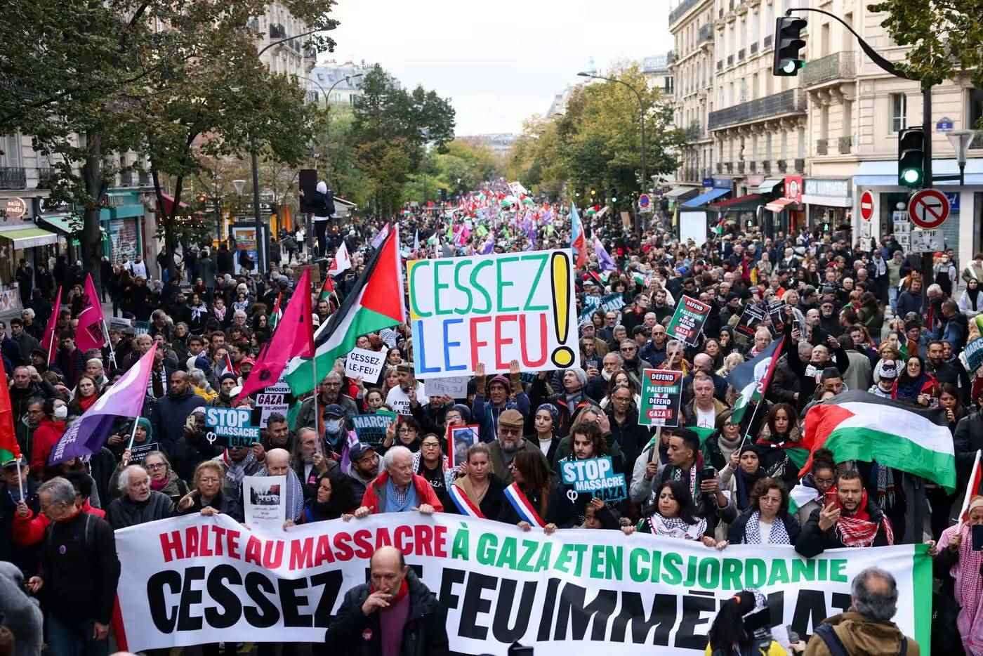 當(dāng)?shù)貢r(shí)間11日,民眾在法國巴黎參加支持巴勒斯坦游行 圖源:《衛(wèi)報(bào)》