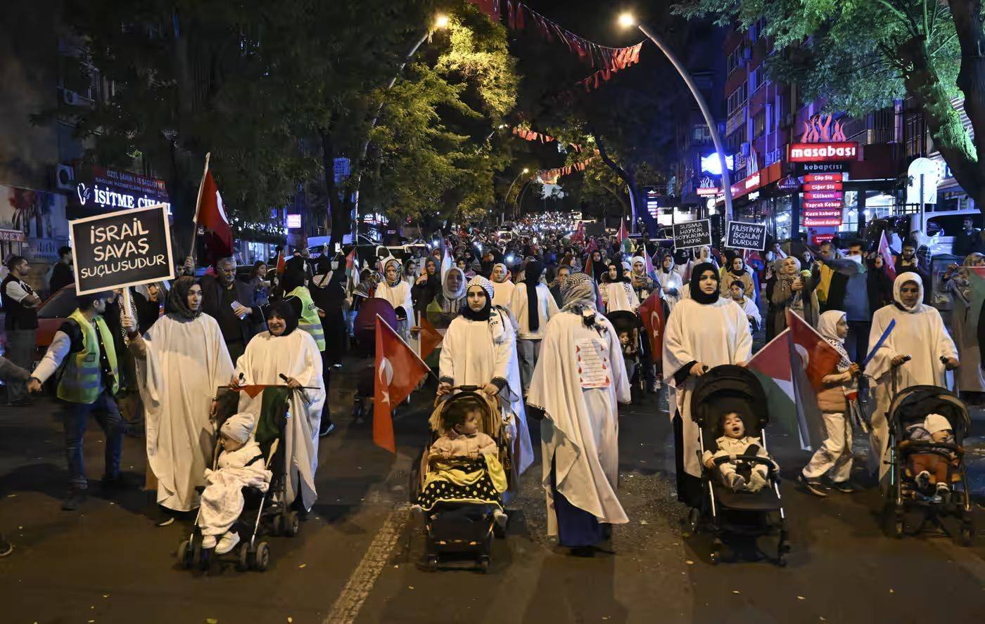 當(dāng)?shù)貢r(shí)間11日,民眾在土耳其安卡拉參加支持巴勒斯坦游行 圖源:《衛(wèi)報(bào)》