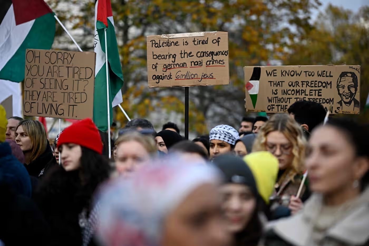 當(dāng)?shù)貢r(shí)間11日,民眾在德國柏林參加支持巴勒斯坦游行 圖源:《衛(wèi)報(bào)》