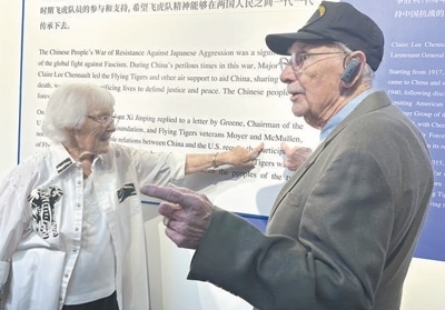 走進(jìn)博物館,代表團(tuán)成員在一張張老照片、一件件珍貴實(shí)物前流連,認(rèn)真聆聽講解,還不時(shí)與身邊親友交談。麥克馬倫在展板上看到自己的名字后,興奮地向妻子珍妮弗指了指名字的位置。他曾擔(dān)任B—24轟炸機(jī)機(jī)頭炮手和助理飛行機(jī)械師,在昆明和成都參加對日作戰(zhàn)??粗AЧ窭锏恼蛊?,他感慨:“美中兩國人民的友誼將延綿不斷?!?/p>