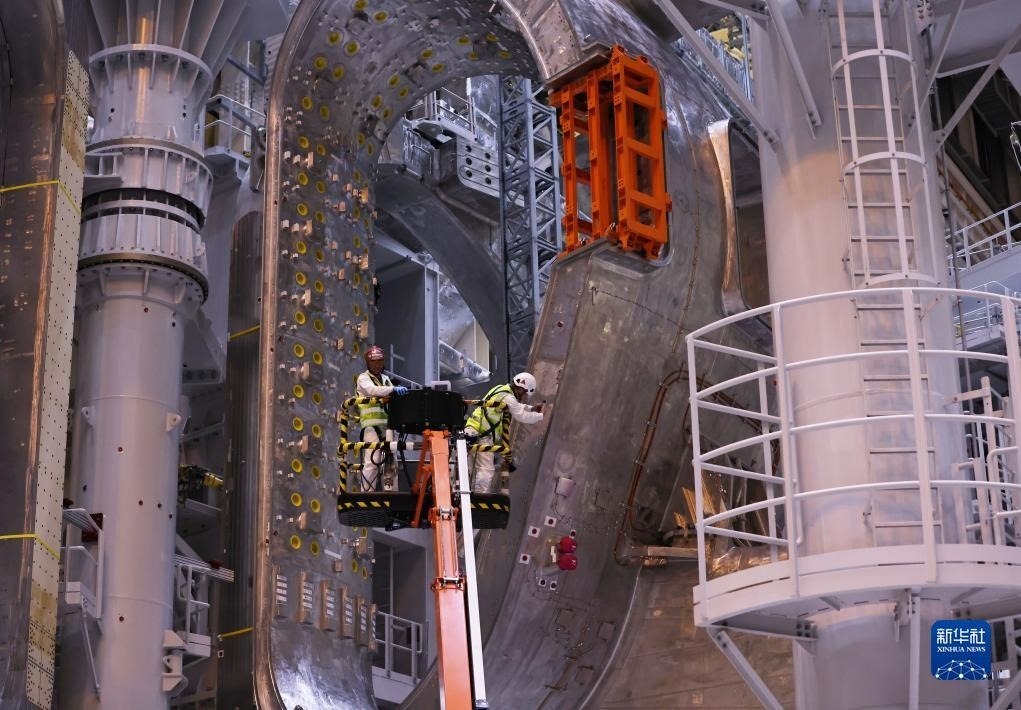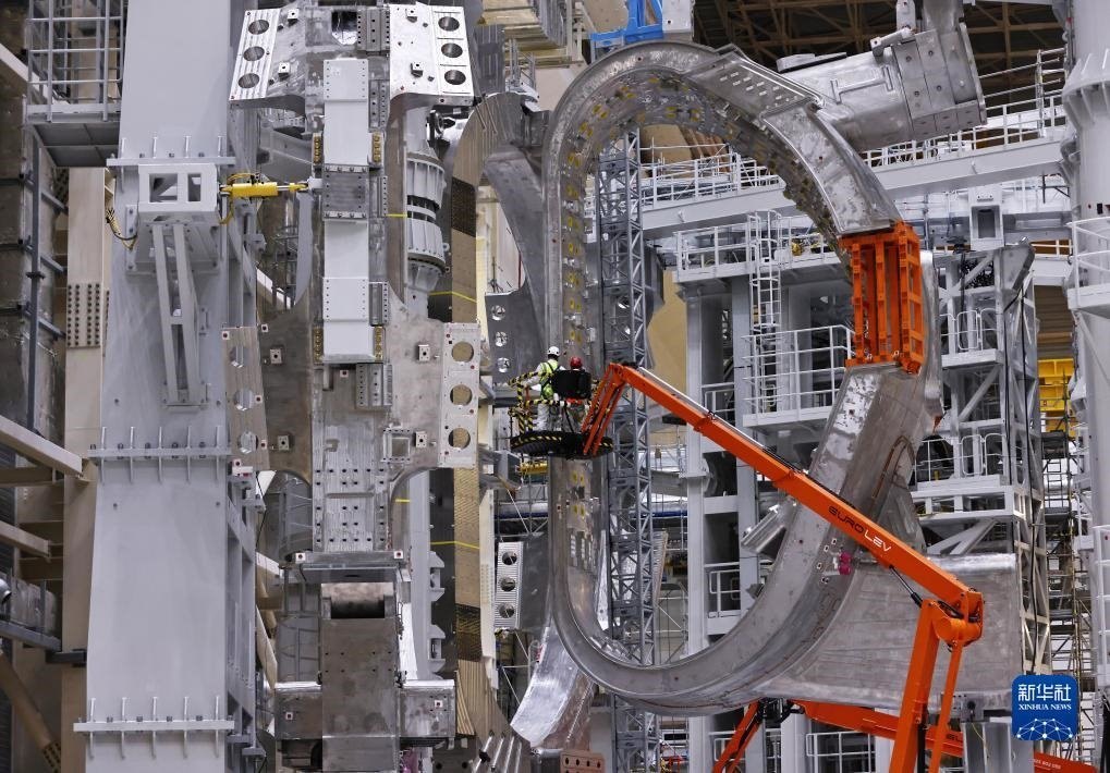 ?這是11月23日在位于法國圣保羅-萊迪朗斯的國際熱核聚變實(shí)驗(yàn)反應(yīng)堆(ITER)建設(shè)現(xiàn)場(chǎng)拍攝的安裝中的托卡馬克裝置。新華社記者 高靜 攝