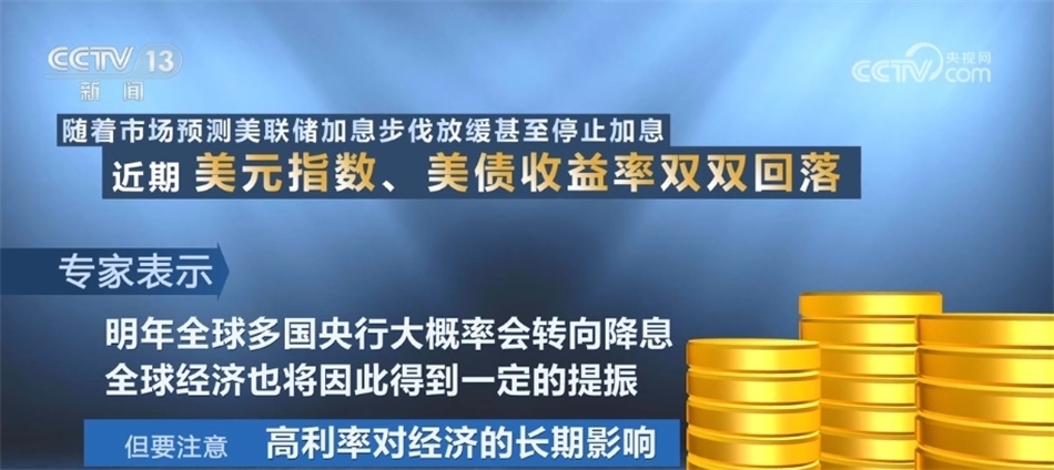 隨著市場預(yù)測美聯(lián)儲加息步伐放緩甚至停止加息,近期,美元指數(shù)、美債收益率雙雙回落,專家表示,明年全球多國央行大概率會轉(zhuǎn)向降息,全球經(jīng)濟(jì)也將因此得到一定的提振。但是,要注意的是,高利率對經(jīng)濟(jì)的長期影響。在國際貨幣基金組織(IMF)此前發(fā)布的《世界經(jīng)濟(jì)展望》中預(yù)計,2024年全球經(jīng)濟(jì)增速為2.9%,較2023年有所下降。