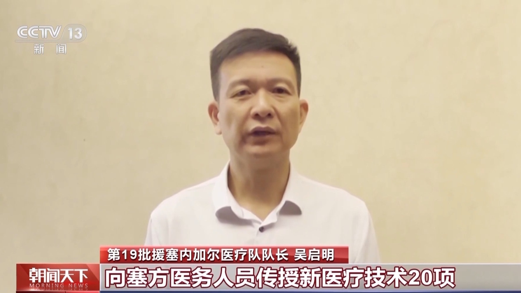 第19批援塞內(nèi)加爾醫(yī)療隊隊長 吳啟明:援塞兩年來,我們以推進(jìn)中非對口醫(yī)院合作項目為契機(jī),組織開展巡診、義診活動,向塞方醫(yī)護(hù)人員傳授新醫(yī)療技術(shù)20項,填補(bǔ)了多項技術(shù)空白,全體隊員被塞內(nèi)加爾政府授予國家雄獅勛章。接下來我們將把接力棒傳遞好,持續(xù)以仁心仁術(shù)造福當(dāng)?shù)厝嗣?,為增進(jìn)中塞友誼作出新的貢獻(xiàn)。