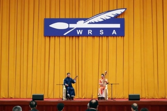 聯(lián)誼會(huì)現(xiàn)場(chǎng),中央民族歌舞團(tuán),浙江小百花越劇院、蘇州市評(píng)彈團(tuán)的藝術(shù)家們?yōu)樵趫?chǎng)嘉賓奉上了民族器樂合奏《五色風(fēng)情》、越劇《十八相送》、評(píng)彈《姑蘇好風(fēng)光》、歌舞劇《同心共圓中國(guó)夢(mèng)》等文藝節(jié)目,為中外嘉賓帶來(lái)一場(chǎng)別具特色的視聽盛宴。