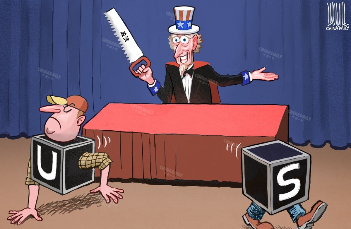 美國政治導致社會分裂。(來源:中國日報 作者:羅杰)