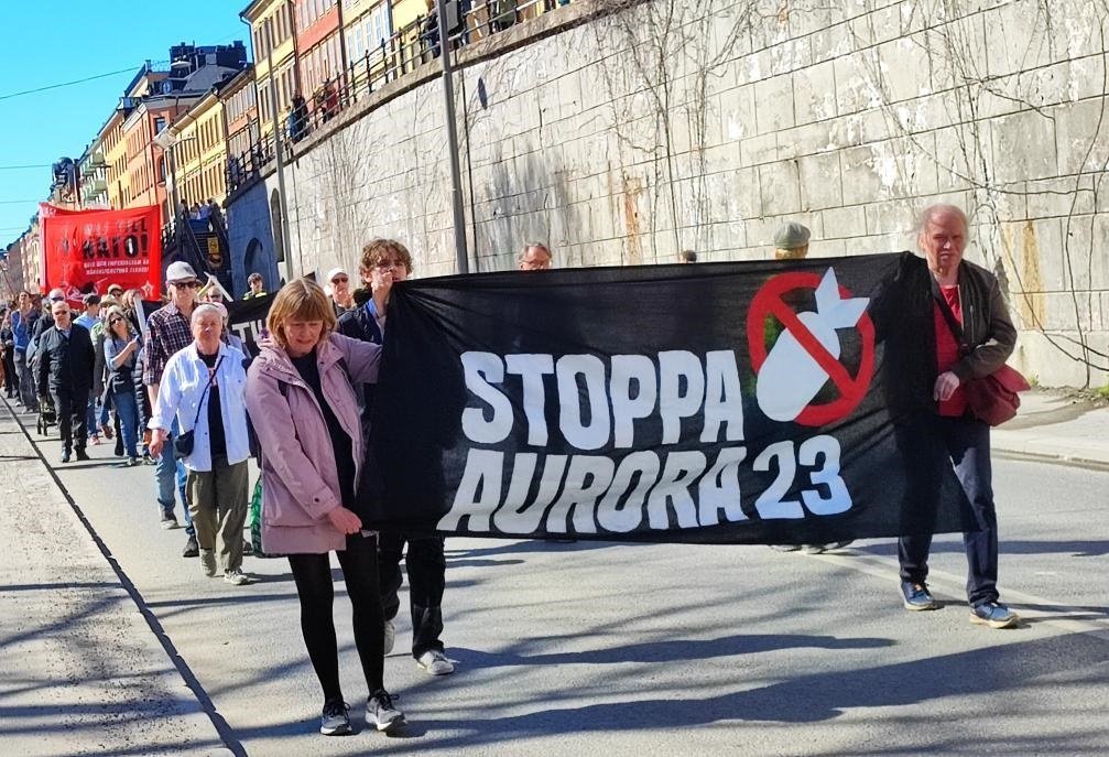 2023年4月22日,人們在瑞典斯德哥爾摩參加抗議活動。瑞典全國近20個城市當(dāng)日舉行活動,抗議在瑞典舉行大規(guī)模國際軍事演習(xí)、反對瑞典加入北約。新華社發(fā)(帕特里克·??怂固靥m德攝)