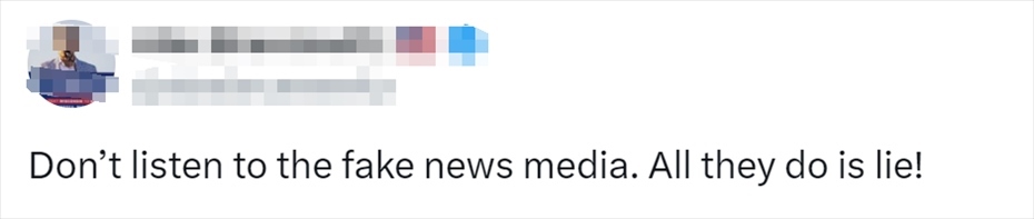 針對(duì)報(bào)道了特朗普這一言論的美國(guó)媒體,有網(wǎng)民留言:“不要聽(tīng)那些虛假新聞媒體說(shuō)的,他們說(shuō)的都是謊言?!?/p>