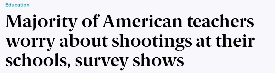 【世界說(shuō)】皮尤調(diào)查:多數(shù)美國(guó)教師擔(dān)心學(xué)校發(fā)生槍擊,僅少數(shù)人認(rèn)可校方應(yīng)對(duì)措施