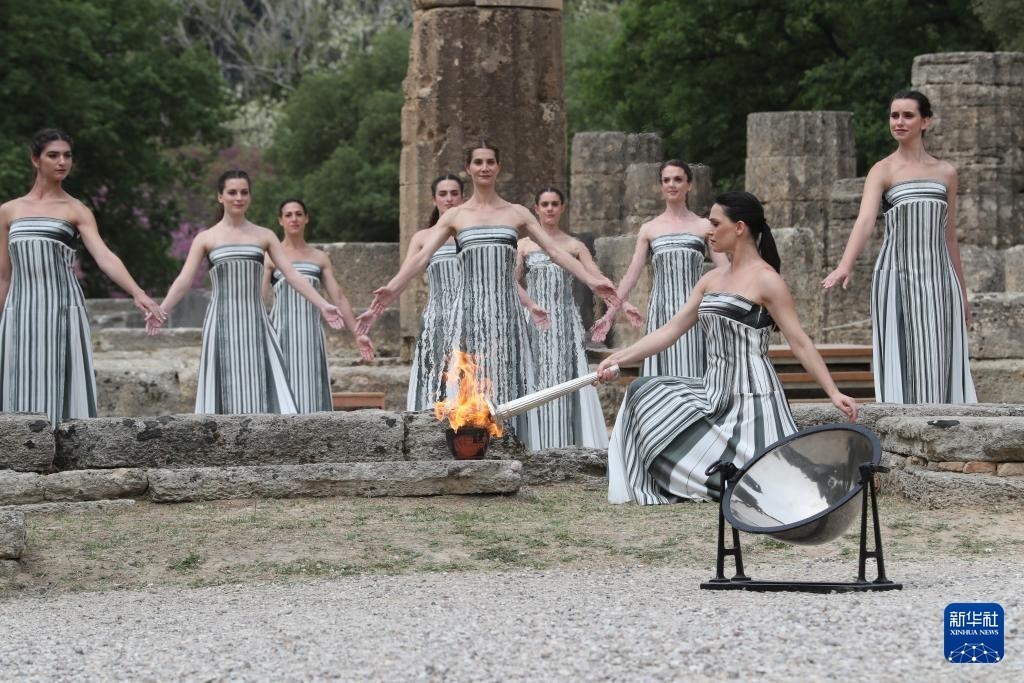 當(dāng)日,2024年巴黎奧運會圣火火種采集儀式在希臘伯羅奔尼撒半島的古奧林匹亞遺址舉行。