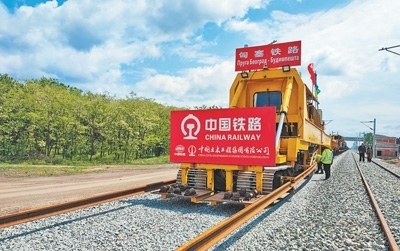 近日,在塞爾維亞和匈牙利邊境地區(qū)的塞爾維亞一側,匈塞鐵路項目施工人員利用鋪軌車等中國設備進行鋪軌作業(yè)。