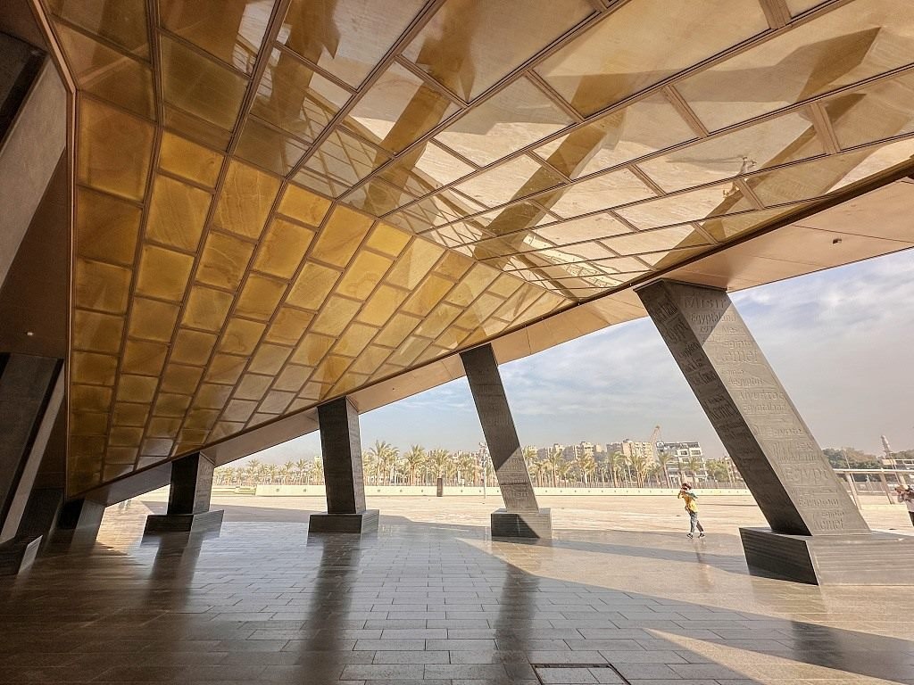 當(dāng)?shù)貢r間2023年11月28日,大埃及博物館門口。
