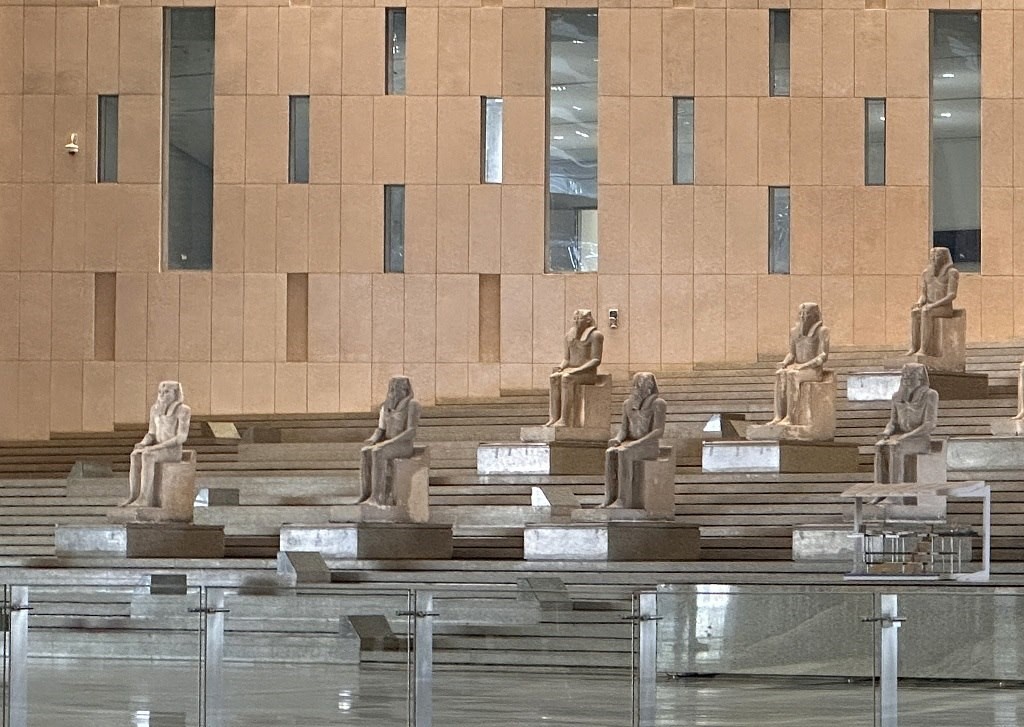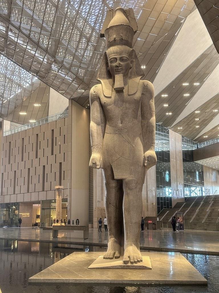 當(dāng)?shù)貢r間2023年11月28日,大埃及博物館大廳中的雕塑。