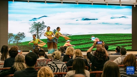中國(guó)常駐聯(lián)合國(guó)代表團(tuán)21日晚協(xié)同中國(guó)文化和旅游部在紐約聯(lián)合國(guó)總部舉辦“茶和天下”國(guó)際茶日展示和慶?;顒?dòng)。河南信陽(yáng)作為中國(guó)著名產(chǎn)茶區(qū),受邀參加活動(dòng)。來(lái)自信陽(yáng)的剪紙、面塑、皮影戲傳承人在現(xiàn)場(chǎng)展示了精湛技藝,茶藝師們泡制了當(dāng)?shù)芈劽男抨?yáng)毛尖,茶香令在場(chǎng)的嘉賓陶醉。