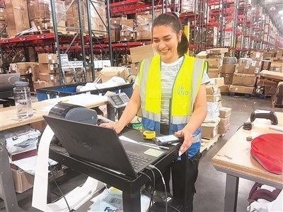 菜鳥美國新澤西海外倉操作組組長杰西卡·卡斯蒂羅說:“隨著海外倉建立的完善,越來越多的中國品牌客戶和美國本地的客戶跟我們合作備貨和配送,我們希望能讓美國的消費者體驗飛一般的中國速度。”