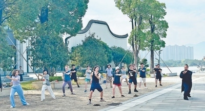 中美青年共同練習(xí)太極拳。以上圖片均為本報記者劉玲玲攝