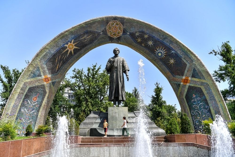 ↑位于杜尚別的索莫尼紀念碑。 新華社記者 周荻瀟 攝