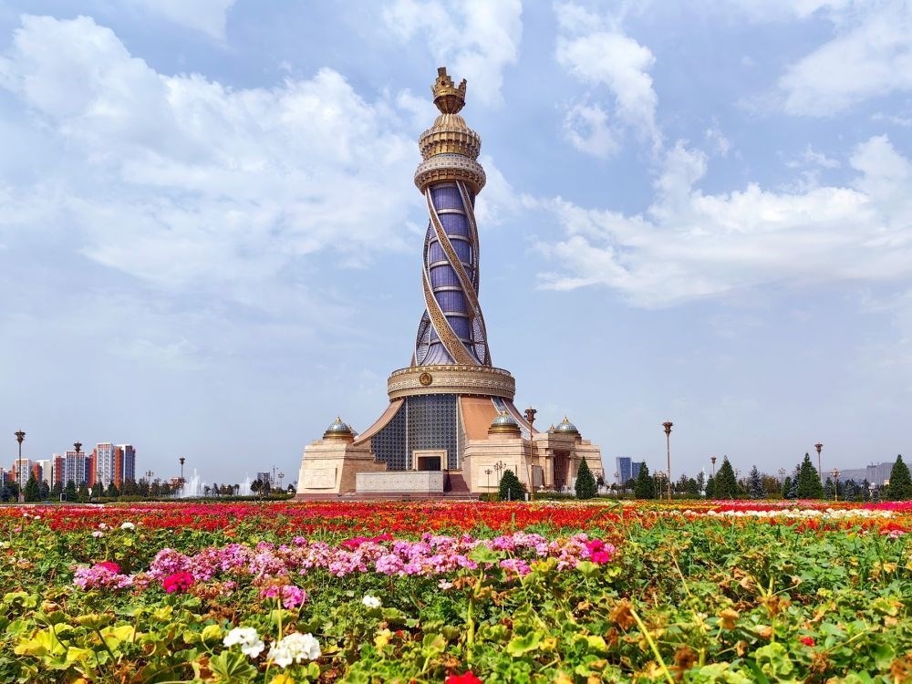 ↑位于杜尚別的獨立與自由塔。 新華社記者 申宏 攝