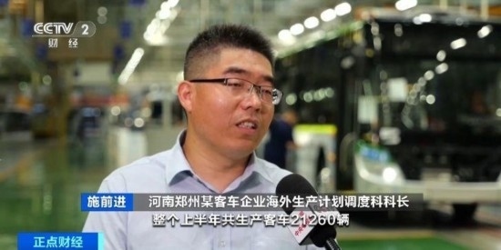 河南鄭州某客車企業(yè)海外生產(chǎn)計(jì)劃調(diào)度科科長(zhǎng) 施前進(jìn):整個(gè)上半年共生產(chǎn)客車21260輛,同比增長(zhǎng)34.86%;其中海外客車出口6500輛,同比增長(zhǎng)58%。后半年訂單還是很飽和的,我們產(chǎn)線一直處于滿負(fù)荷生產(chǎn)狀態(tài),一直持續(xù)到年底。