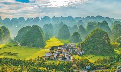 貴州興義世界地質(zhì)公園內(nèi)萬(wàn)峰林景區(qū)錐狀峰林。張 霆攝