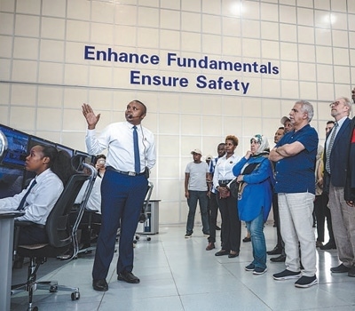 2023年10月6日,多國(guó)駐肯使節(jié)在肯尼亞內(nèi)羅畢的蒙內(nèi)鐵路內(nèi)羅畢站調(diào)度中心參觀(guān)。新華社記者 王冠森攝