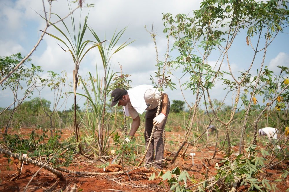 2020年3月24日,在位于海南省的中國熱帶農(nóng)業(yè)科學(xué)院的一處基地,來自埃及的副教授哈馬達·穆罕默德·哈桑·阿卜杜拉參加中國熱科院熱帶生物技術(shù)研究所木薯育種團隊開展的木薯選育新技術(shù)培訓(xùn)。