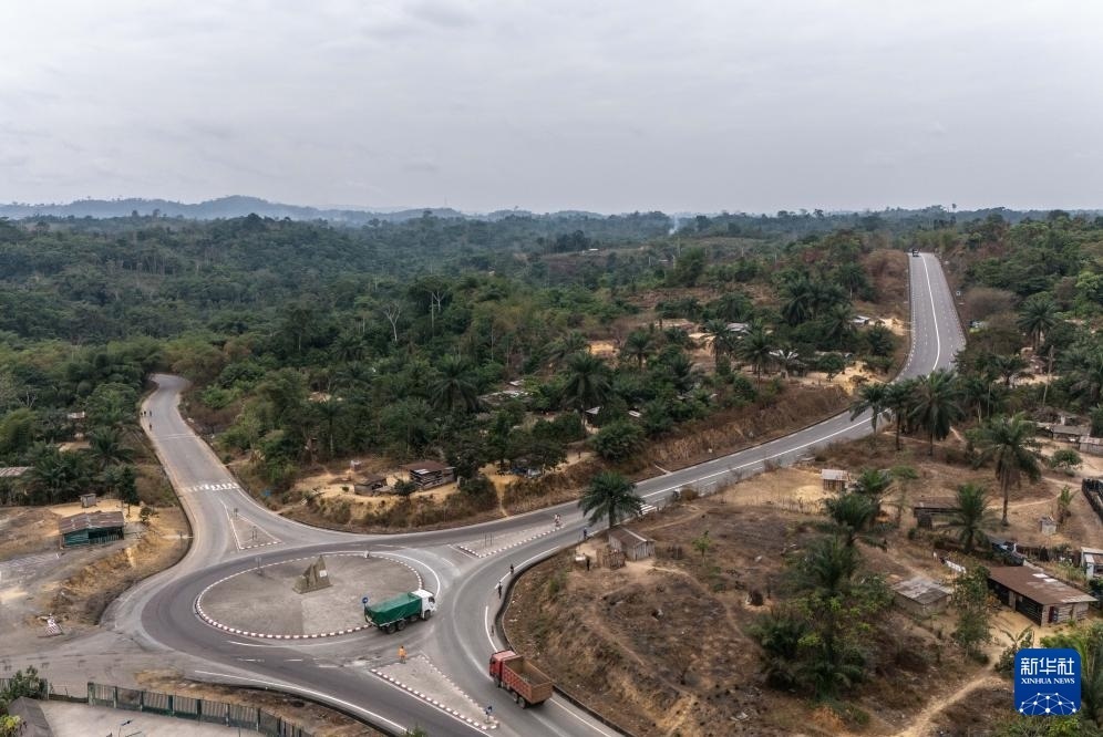 這是8月1日拍攝的連接布拉柴維爾和黑角的剛果(布)國家一號公路(無人機(jī)照片)。
