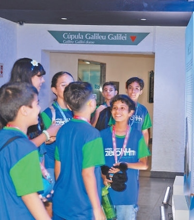當地學生在展板前展開討論交流。本報記者 宋亦然攝