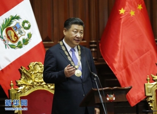 2016年11月21日,國家主席習(xí)近平在秘魯國會(huì)發(fā)表題為《同舟共濟(jì)、揚(yáng)帆遠(yuǎn)航,共創(chuàng)中拉關(guān)系美好未來》的重要演講。新華社記者 鞠 鵬攝