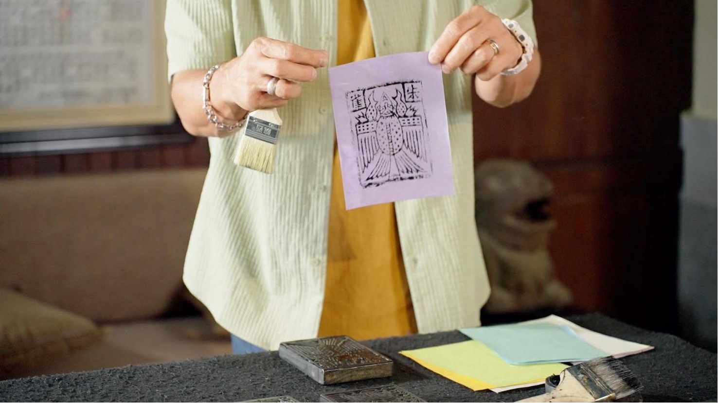 林登帶記者參觀了喜林苑的“小小圖書館”。這間約10平方米的屋子是林登的得意之作。走進(jìn)屋子,中間是張大木頭案幾,案幾上放著制作大理“非遺”甲馬的木制刻板。案幾后,書柜占滿了整整一面墻,書架上擺放著各種文字的書,都是講中國故事的。當(dāng)初開設(shè)喜林苑時,林登特地騰出了這個房間,免費對喜洲村民和游客開放?!拔覀兘?jīng)常在這里舉辦各種文化交流活動,邀請大家來玩。”