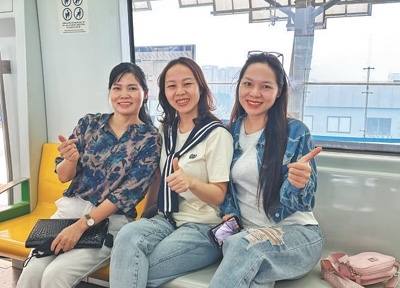 越南河內市民點贊由中企承建的該國首條城市輕軌吉靈—河東線。