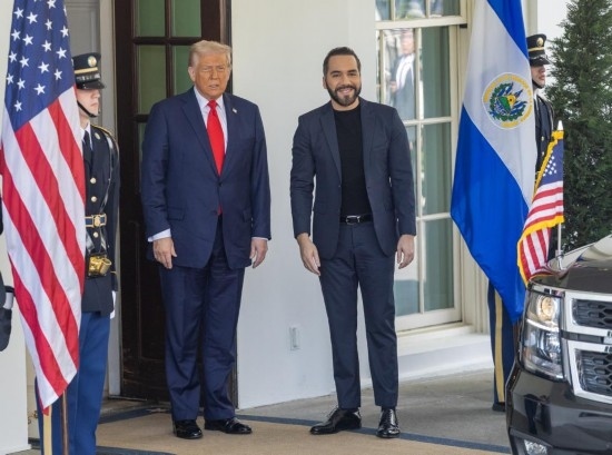 2025年4月14日,美國總統(tǒng)特朗普在白宮會見到訪的薩爾瓦多總統(tǒng)布克爾。新華社記者胡友松攝