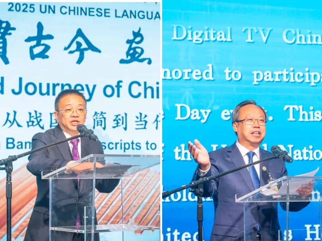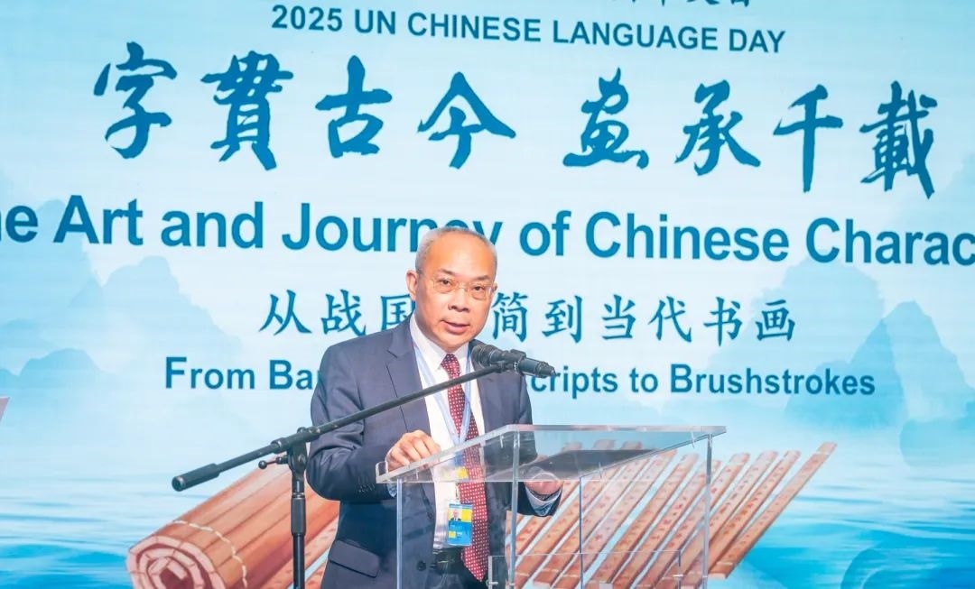 此次中文日活動以“字貫古今 畫承千載——從戰(zhàn)國竹簡到當(dāng)代書畫”為主題,由中國常駐維也納代表團(tuán)、聯(lián)合國維也納辦事處主辦,中央數(shù)字電視書畫頻道、清華大學(xué)、安徽大學(xué)、吉林大學(xué)協(xié)辦,共同為維也納聯(lián)合國總部獻(xiàn)上了一場中國文化盛宴。清華大學(xué)副校長彭剛、中央數(shù)字電視書畫頻道董事局主席王平在開幕式致辭,探討了文字、文化、文明三者之間的緊密關(guān)系和文明交流互鑒的重要意義。
