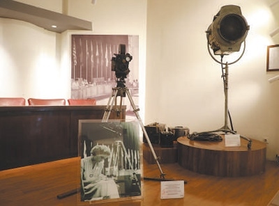 萬隆會議期間使用的攝影機和聚光燈。