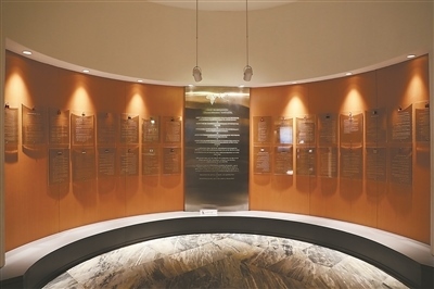 博物館展廳一側(cè),弧形墻上懸掛著29塊玻璃匾,分別用與會國家和地區(qū)的文字鐫刻著萬隆會議十項原則。