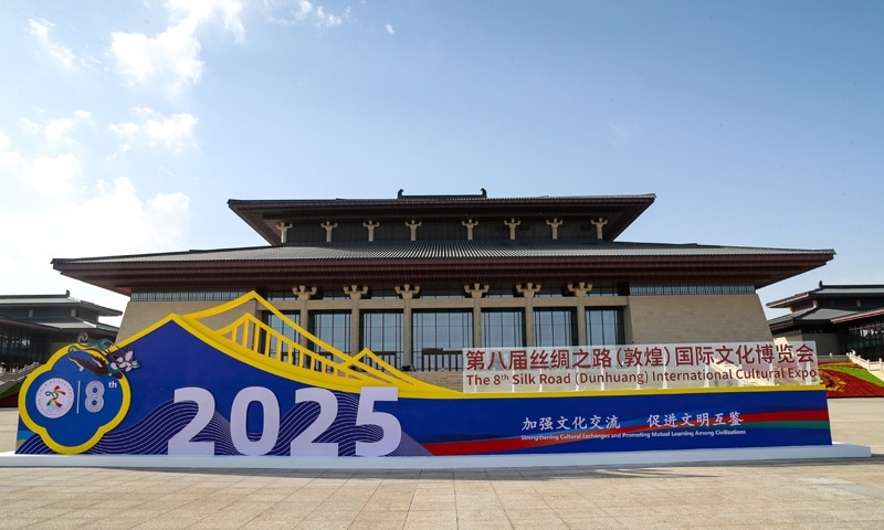 這是9月21日拍攝的第八屆絲綢之路(敦煌)國際文化博覽會場館外景。