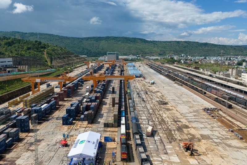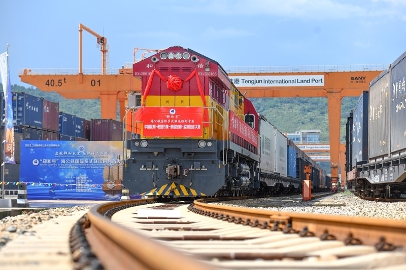 當(dāng)日下午,“鄭和號”海公鐵國際多式聯(lián)運(yùn)班列首發(fā)列車從云南省昆明市騰俊國際陸港公鐵聯(lián)運(yùn)中心發(fā)車,貨物經(jīng)中老鐵路抵達(dá)老撾萬象后再分成三條線路,分別運(yùn)至泰國、新加坡和孟加拉國,開辟了中國昆明至孟加拉國吉大港的全新路線。