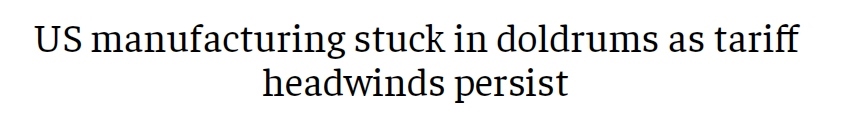 此外,印度《經濟時報》2日發(fā)表題為《關稅阻力持續(xù)存在 美國制造業(yè)陷入低迷》的文章。文章指出,11月,美國制造業(yè)連續(xù)第九個月萎縮,工廠面臨訂單下滑和原材料價格上漲的雙重困境,進口關稅的拖累持續(xù)存在。