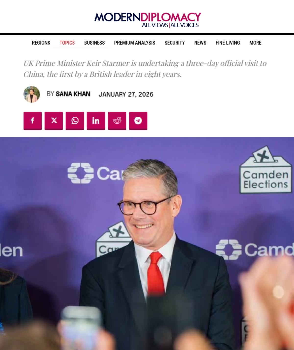 歐洲《現(xiàn)代外交》網(wǎng)站報道稱,斯塔默此行標(biāo)志著英國外交策略的轉(zhuǎn)變,倫敦正在根據(jù)地緣政治變化重新評估其全球伙伴關(guān)系。報道稱,斯塔默將探索與世界第二大經(jīng)濟體的經(jīng)濟和貿(mào)易合作途徑,旨在吸引投資,擴大英國企業(yè)的市場準(zhǔn)入,并與中國就氣候變化、人工智能和公共衛(wèi)生等共同全球關(guān)切展開交流。報道還分析稱,此次訪問展示了中等大國如何通過多元化伙伴關(guān)系來保護本國利益,以應(yīng)對國際關(guān)系中系統(tǒng)性的不確定性。