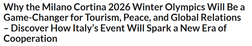 文章認為,2026年米蘭-科爾蒂納冬季奧運會舉辦的意義遠不止于爭奪金牌,還將有力推動全球旅游業(yè)復(fù)蘇、促進和平理念傳播,并通過體育運動將不同文化緊密連接。