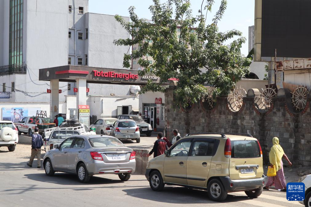 3月17日,在埃塞俄比亞首都亞的斯亞貝巴,車輛在加油站外排隊等待加油。新華社記者 劉方強 攝