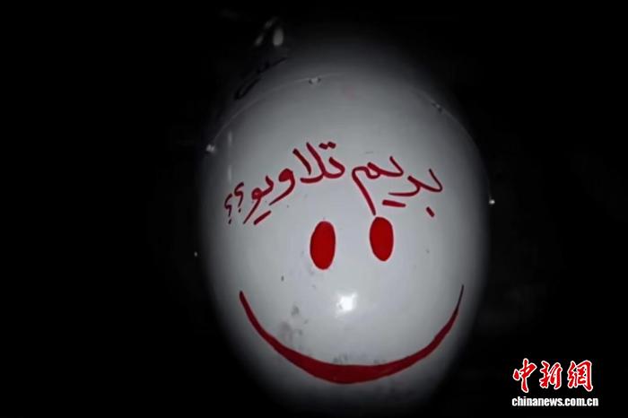 伊朗法爾斯通訊社發(fā)布的圖片顯示,伊朗伊斯蘭革命衛(wèi)隊(duì)向以色列特拉維夫發(fā)射的“目擊者-136”無(wú)人機(jī),彈頭上用波斯語(yǔ)寫著“我們?nèi)ヌ乩S夫吧”,并畫了個(gè)笑臉。