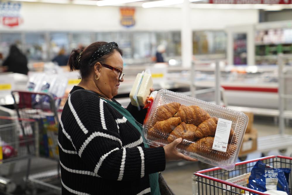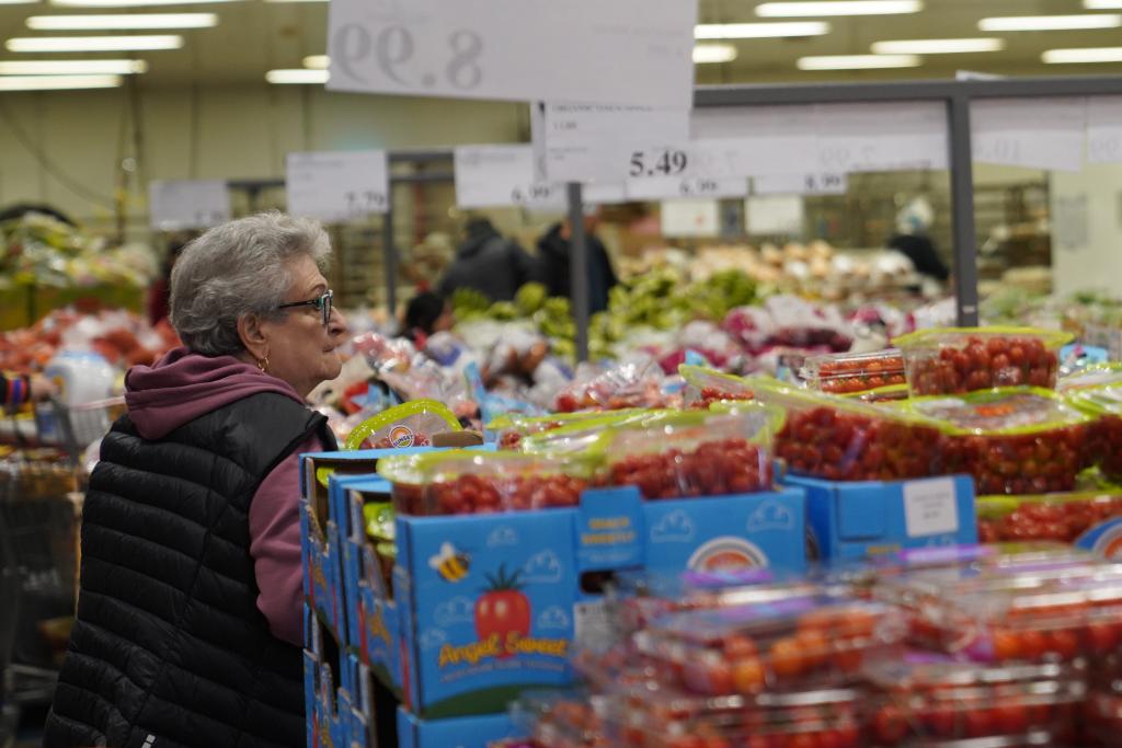4月10日,一名女子在美國紐約一家超市選購食品。新華社記者 張鳳國 攝
