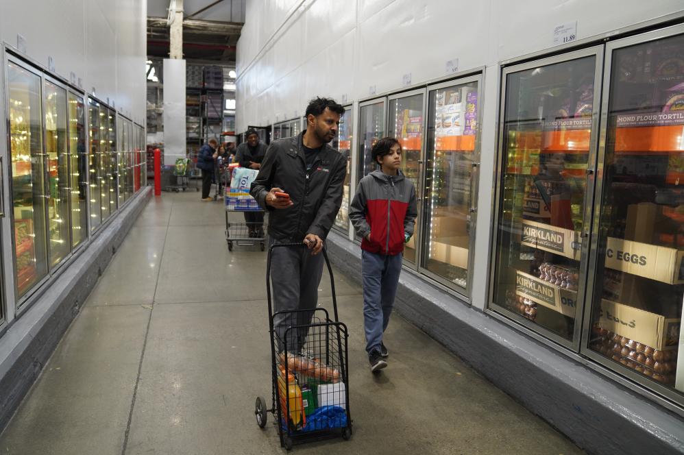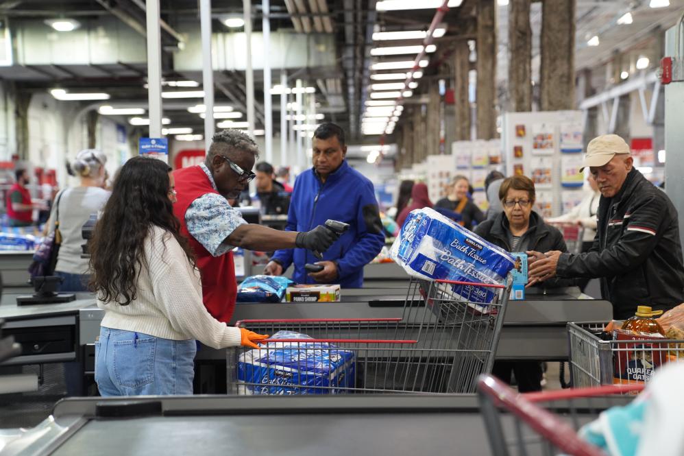 4月10日,市民在美國紐約一家超市購買生活用品。新華社記者 張鳳國 攝