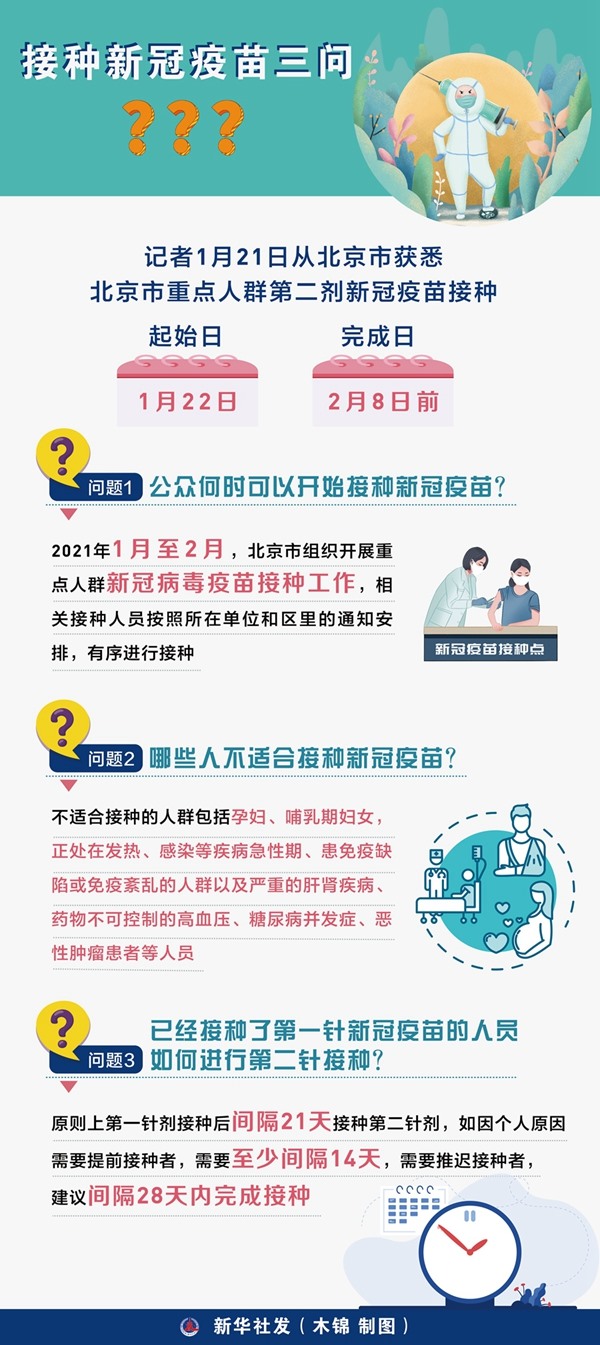 2021年1月至2月,北京市組織開(kāi)展重點(diǎn)人群新冠病毒疫苗接種工作,相關(guān)接種人員按照所在單位和區(qū)里的通知安排,有序進(jìn)行接種。