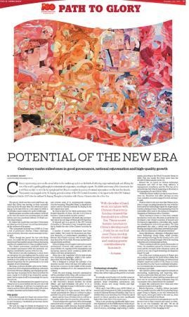 作為中國日?qǐng)?bào)外籍記者,穆迪一共發(fā)表了700多篇封面報(bào)道和評(píng)論,總計(jì)100多萬字。從2019年為《中國日?qǐng)?bào)》“慶祝新中國成立七十周年??弊珜戭}為《新時(shí)代,共未來》的封面文章,到今年建黨百年??系男侣劮治觥缎聲r(shí)代的潛力》,“新時(shí)代中國”是穆迪近年寫作的主題。