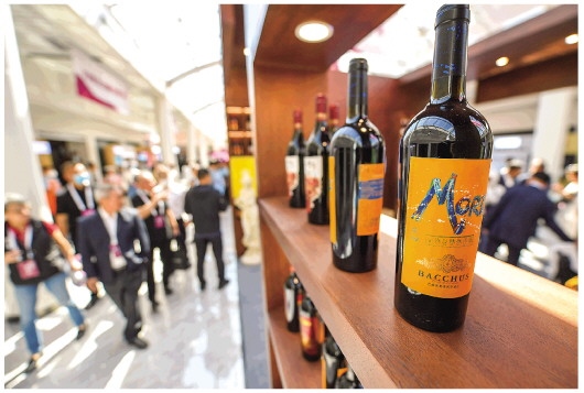 這是賀蘭山葡萄酒展銷會現(xiàn)場展示的寧夏葡萄酒(9月7日攝)。新華社記者馮開華攝